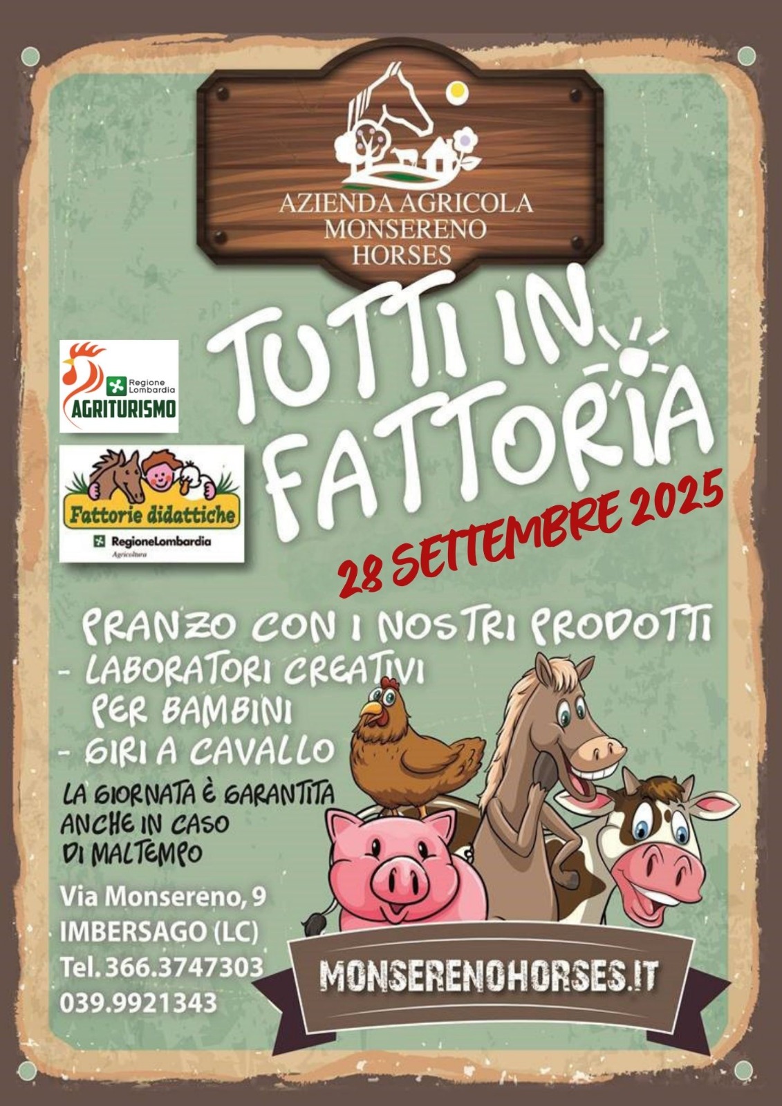 Una giornata all’insegna della scoperta della natura e del divertimento. In occasione del carnevale sarà ancora più bello stare insieme nel magico scenario del Monsereno: potrete andare a cavallo, scoprire gli animali della Fattoria, liberare la vostra fantasia e creatività nei laboratori e tanto altro!